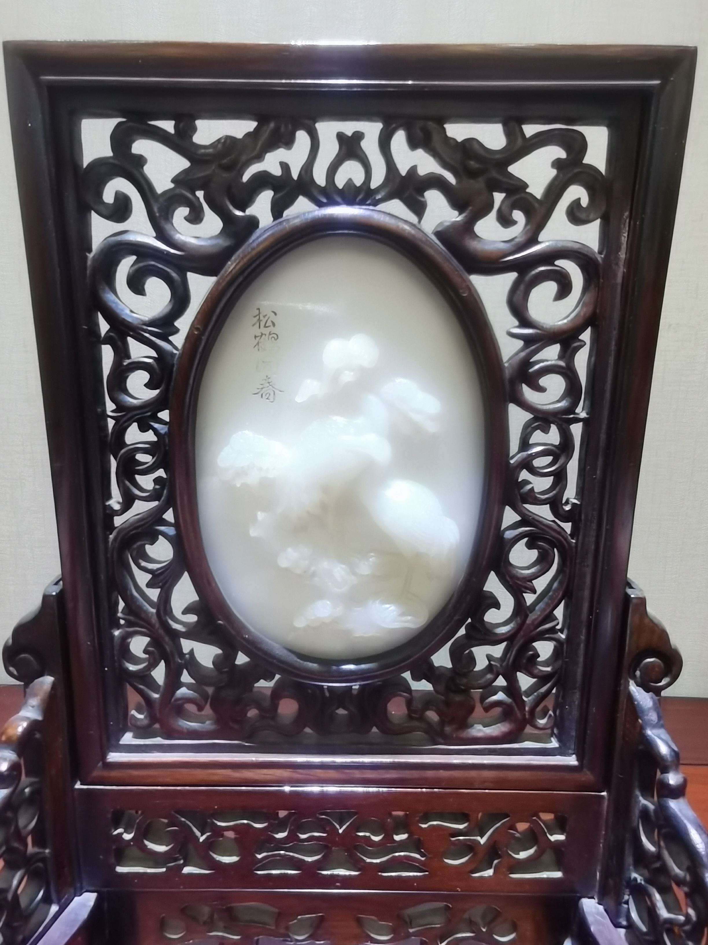 和田玉插屏——松鶴同春