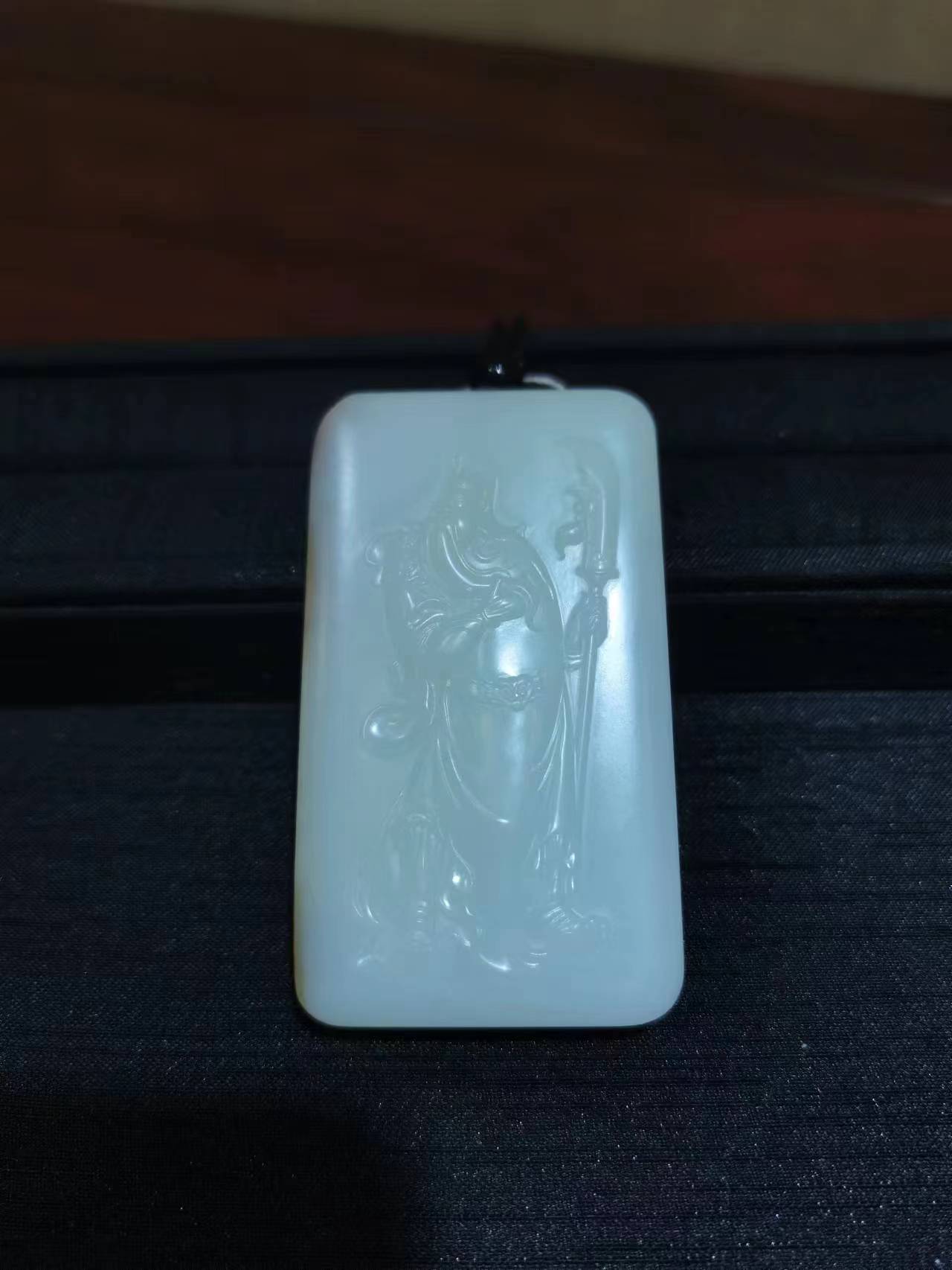 此款關公牌羊脂白玉,質地油潤細膩,白皙無暇,側面沁色,毛孔可見,無論質地抑或雕工皆為上品,乃集賞、玩、藏、傳世之精極品。